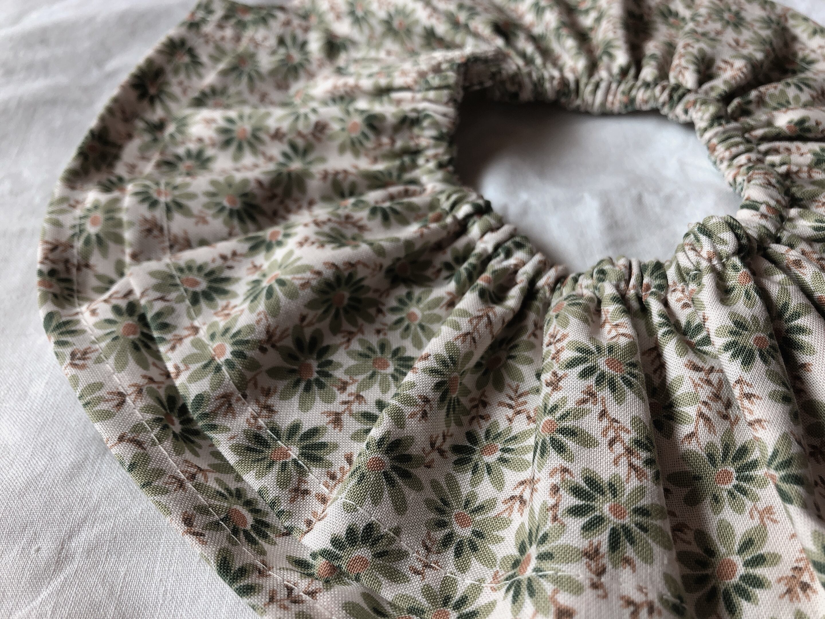 生地コレクターである母の生地コレクションの中から、こちらのビブにぴったりの生地をセレクトしております。