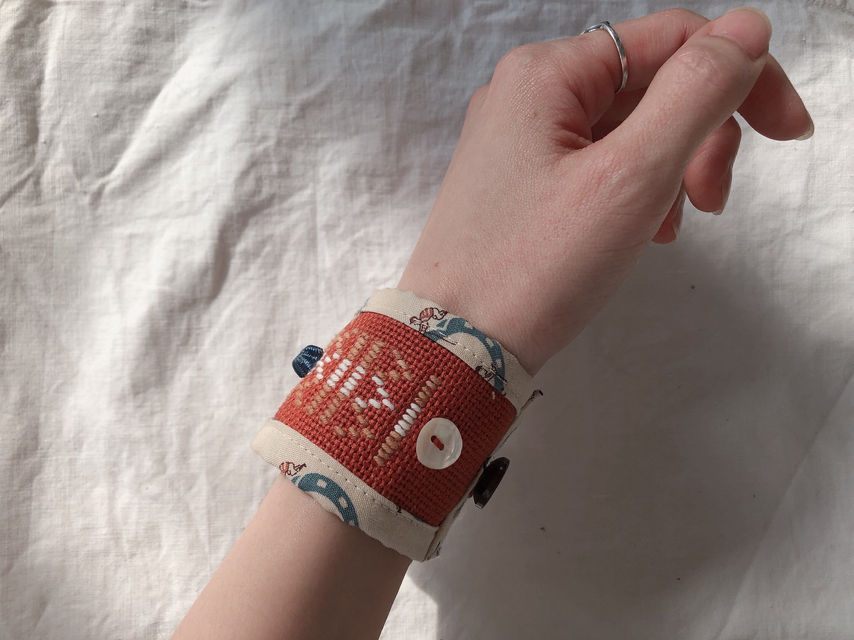 〔 刺し子と古い生地とヴィンテージパーツのブレスレット 〕