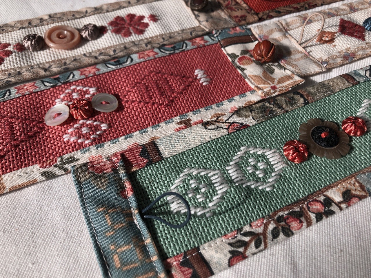 刺し子と古い生地とヴィンテージパーツのブレスレット