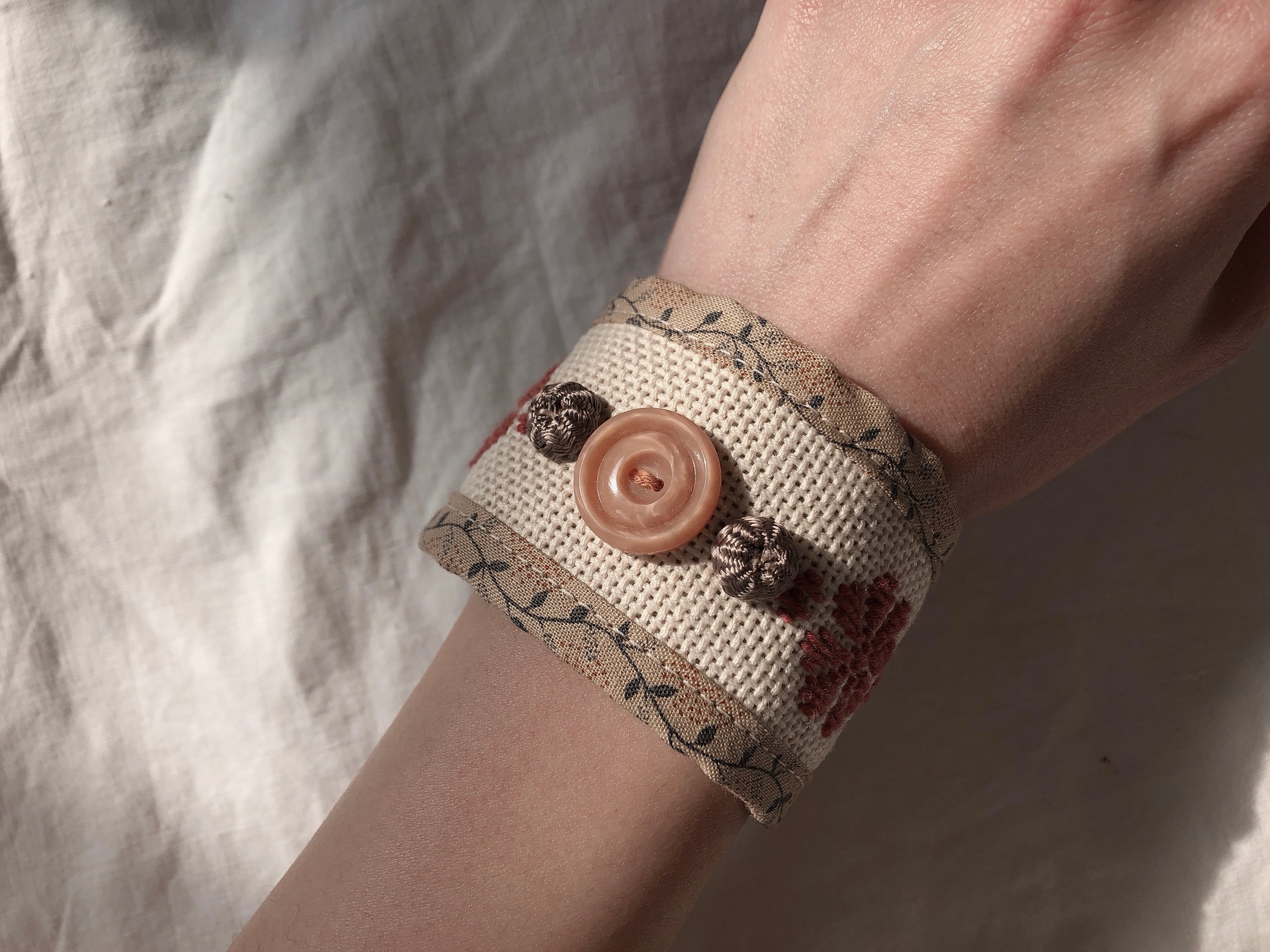 〔 刺し子と古い生地とヴィンテージパーツのブレスレット 〕