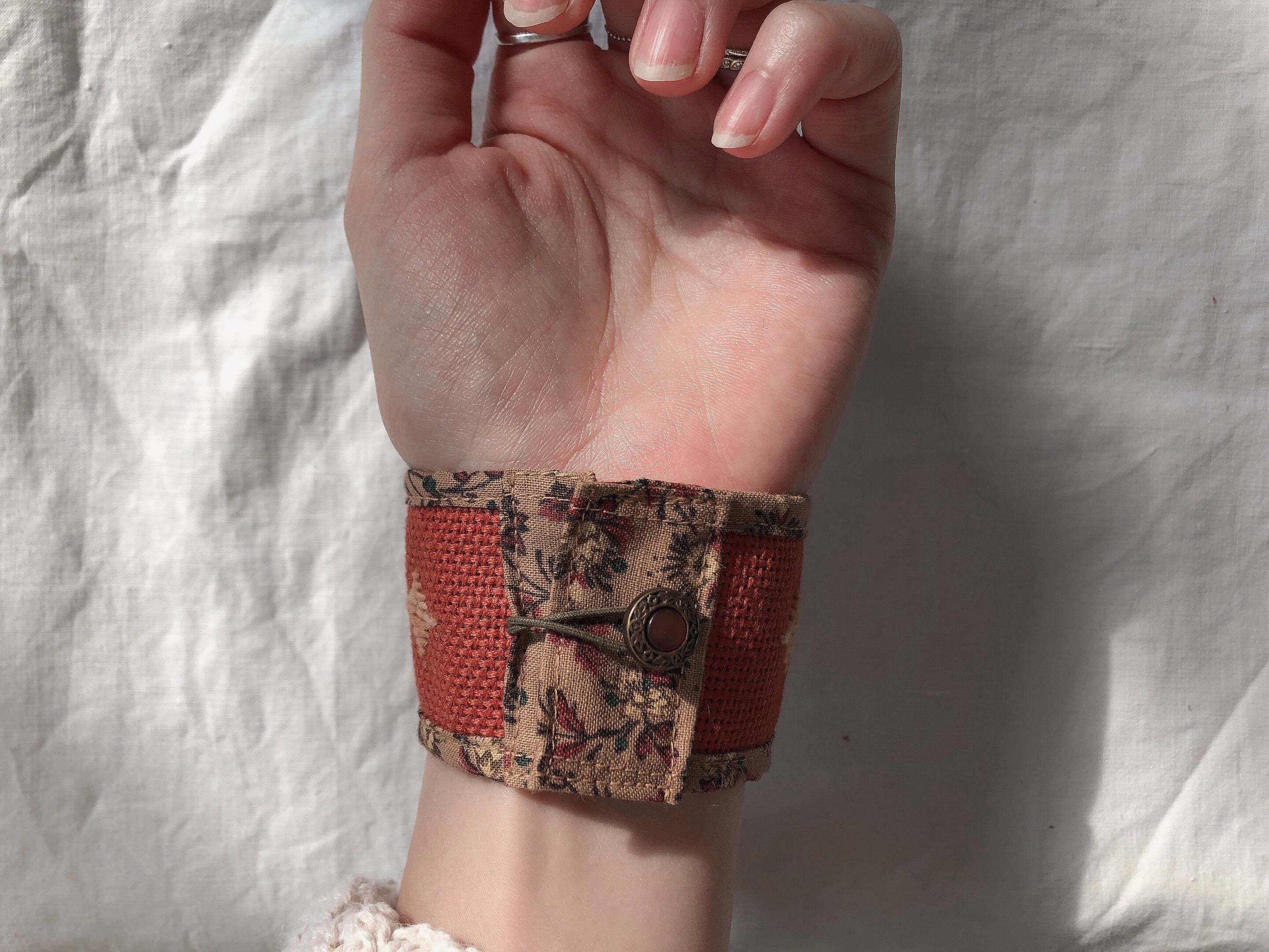 刺し子と古い生地とヴィンテージパーツのブレスレット