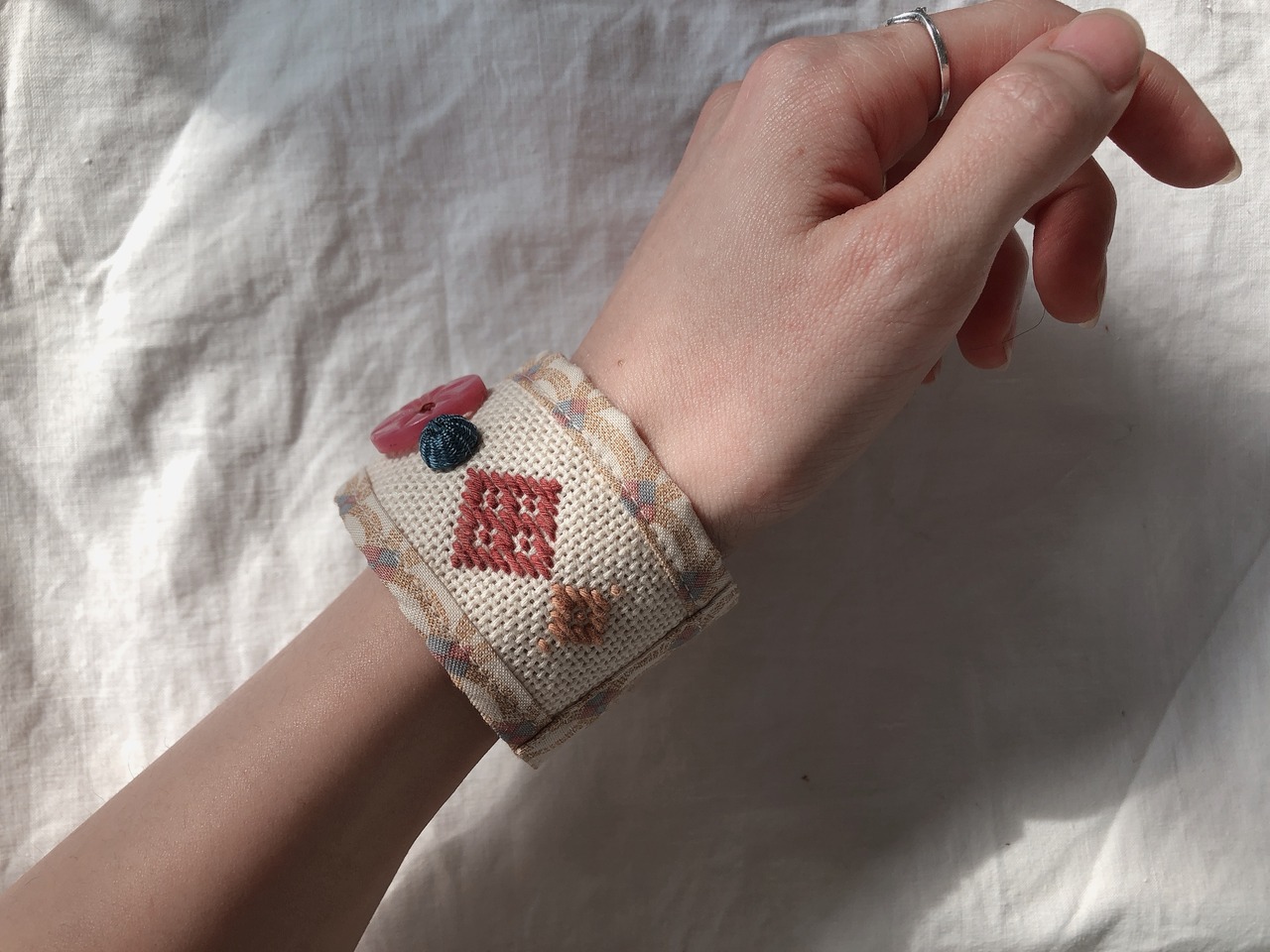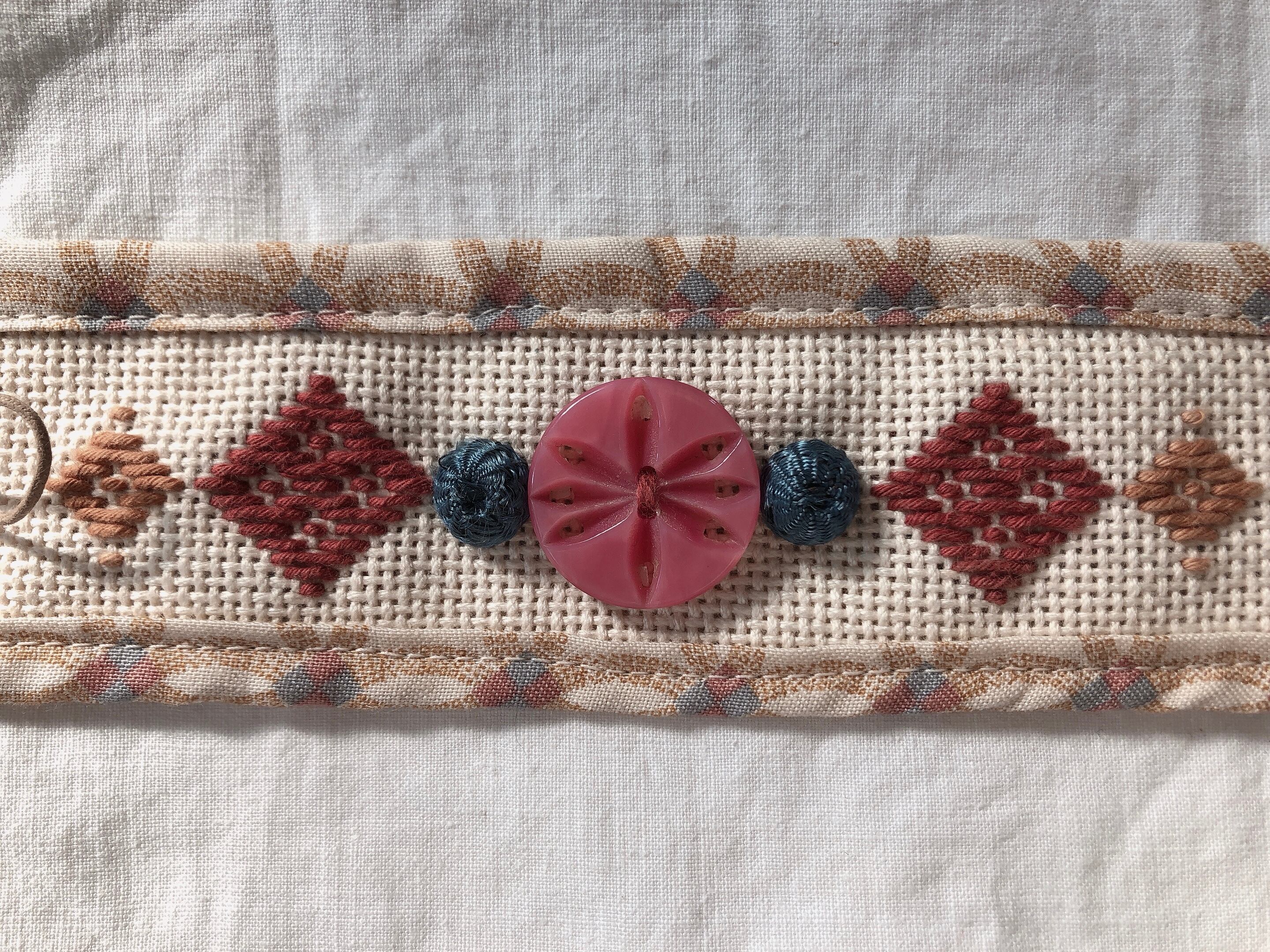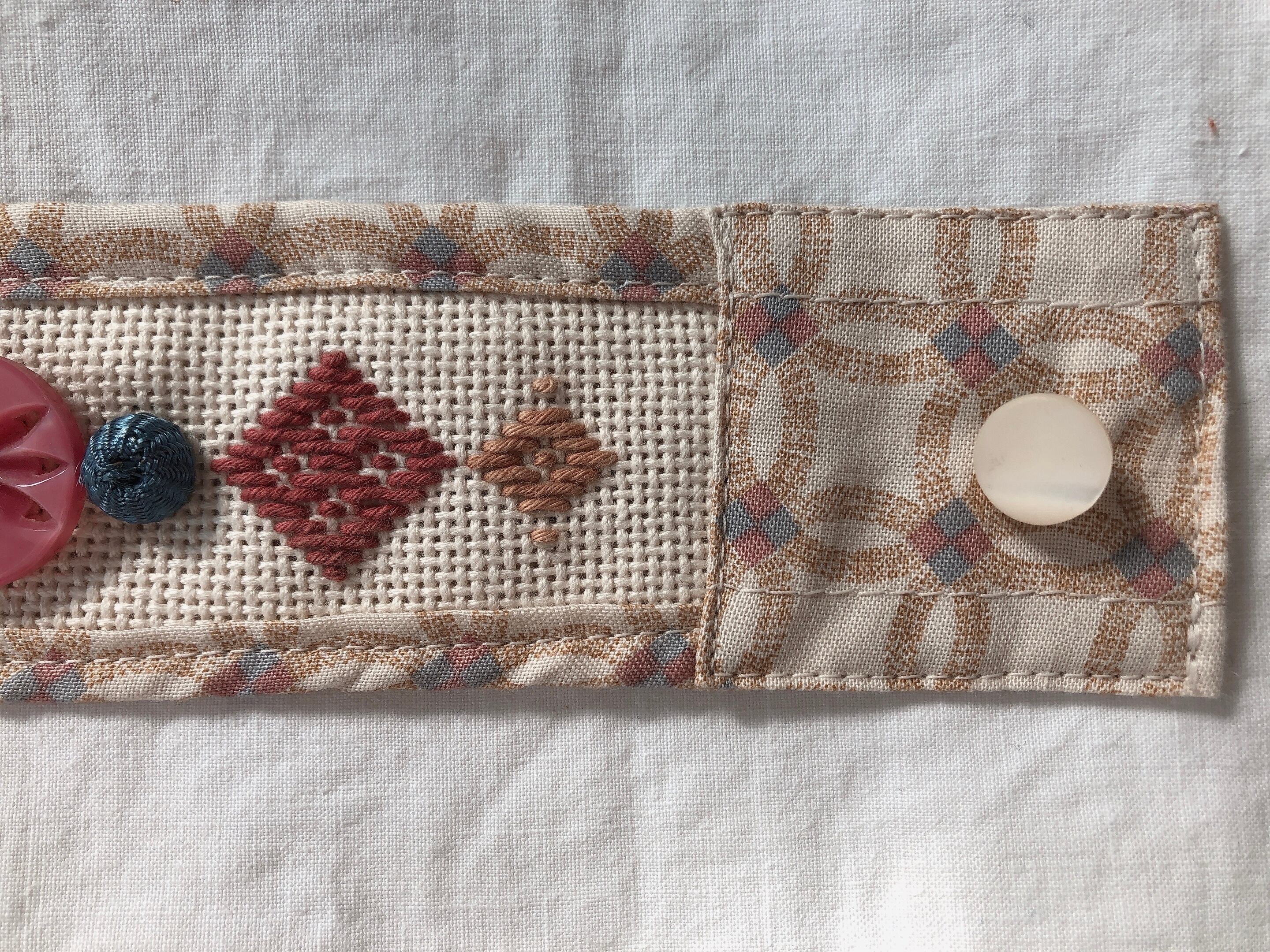 刺し子と古い生地とヴィンテージパーツのブレスレット