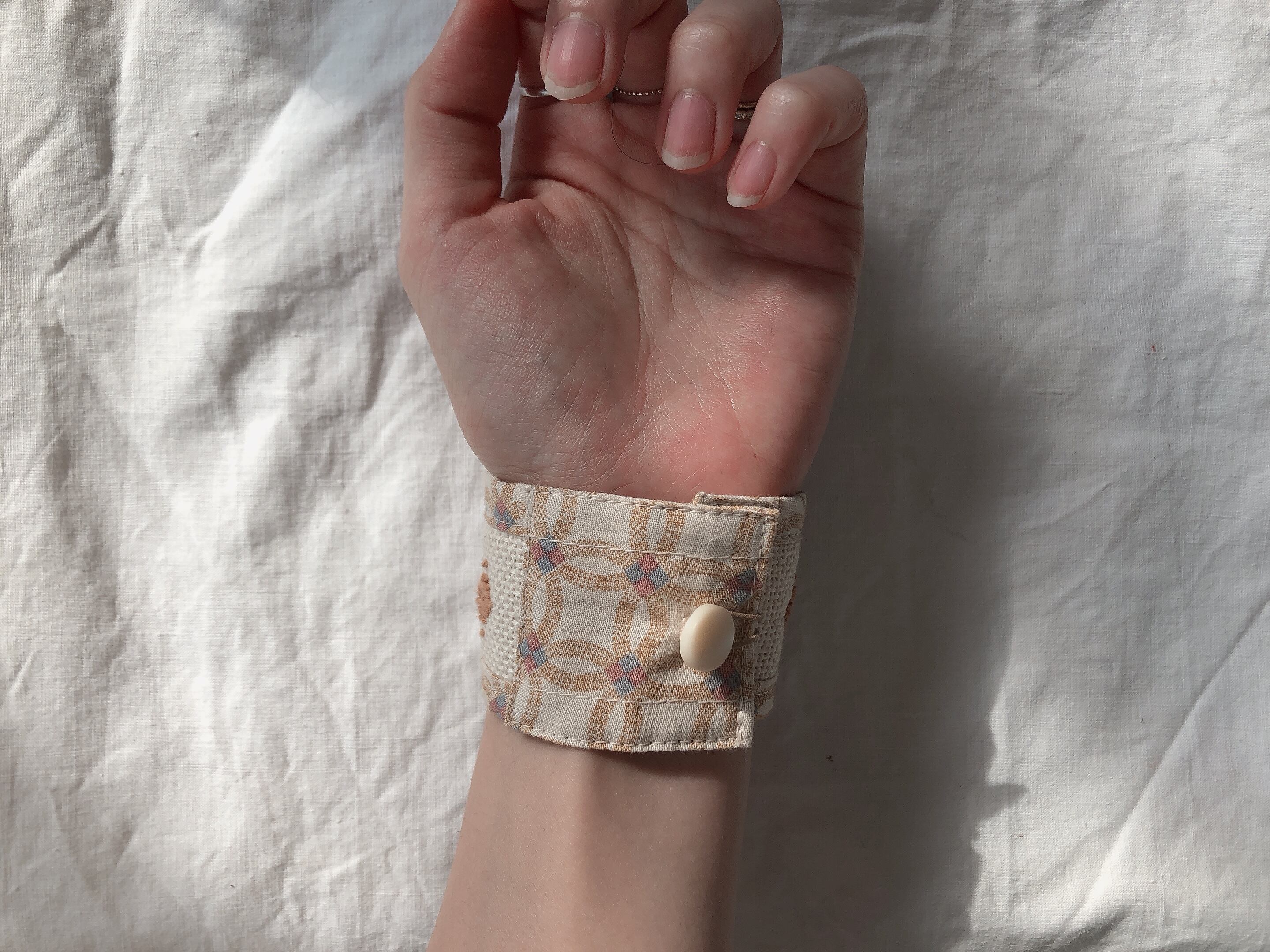 自然に身につけられるよう、シャツの袖をイメージして作っています。