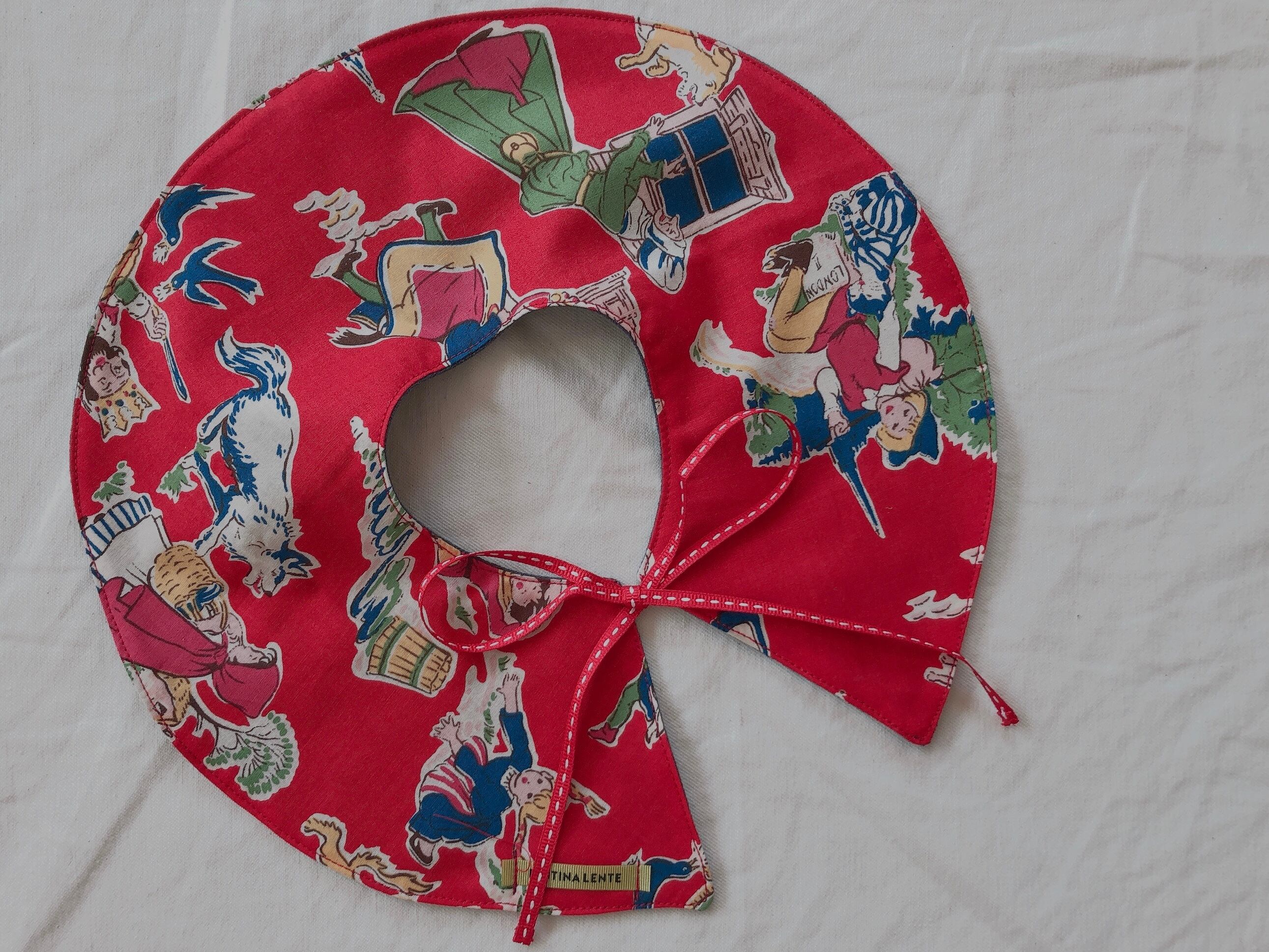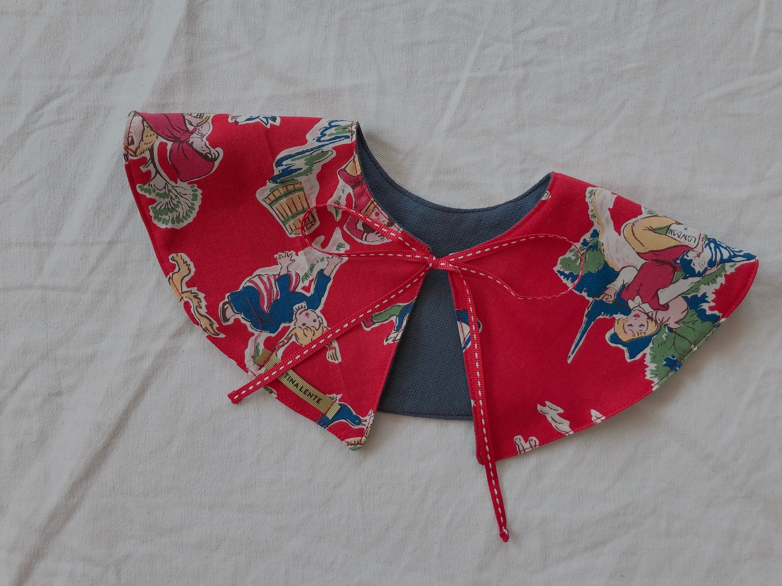 まんまるに裁断した生地を合わせた、つけ襟のようなビブ