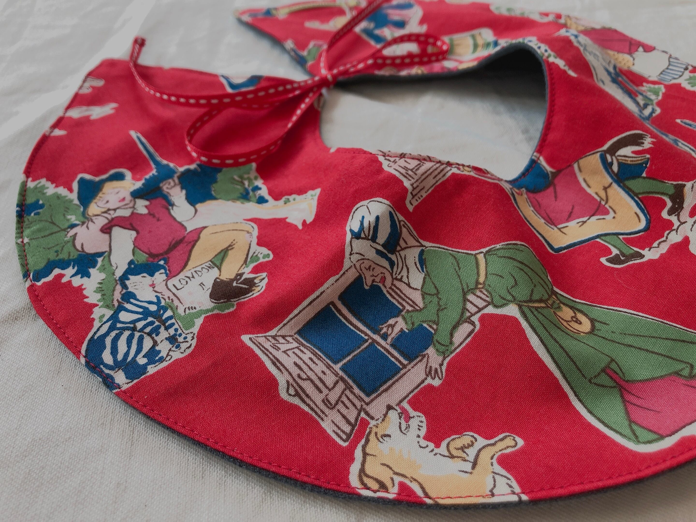 生地コレクターである母の生地コレクションの中から、こちらのビブにぴったりの生地をセレクトしております。