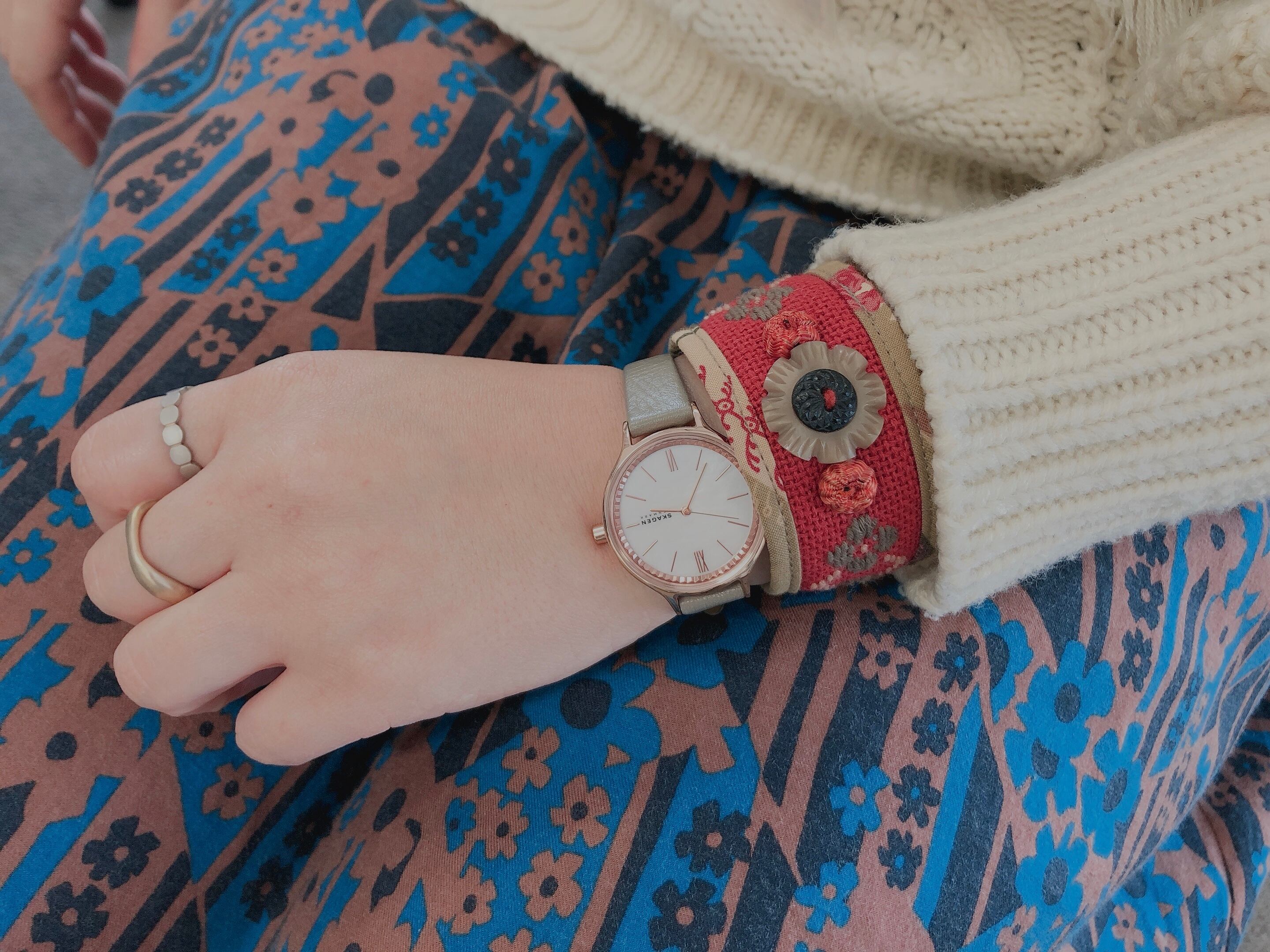 完成してお渡ししたところすぐつけてくれて、スカートとの相性ばっちり。パーツとスカートのお花がそっくり(!)