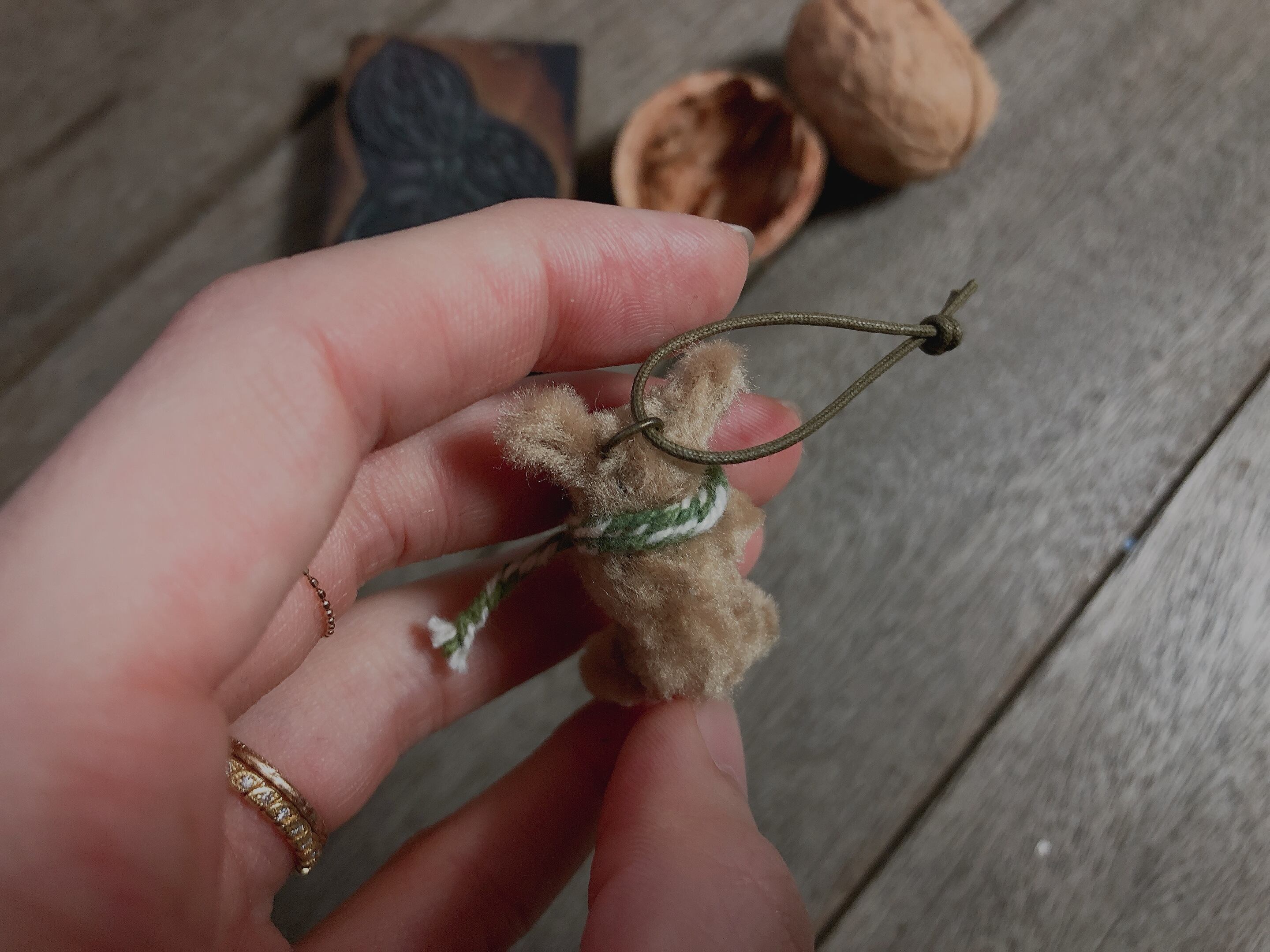and オーナメントにできるように、丸カンと蝋引きのひもをつけました。