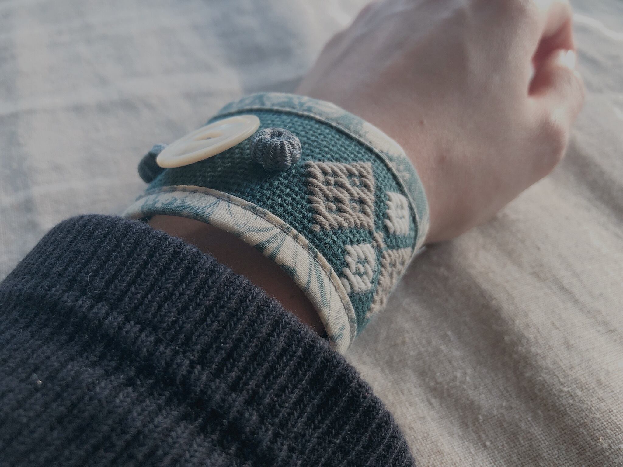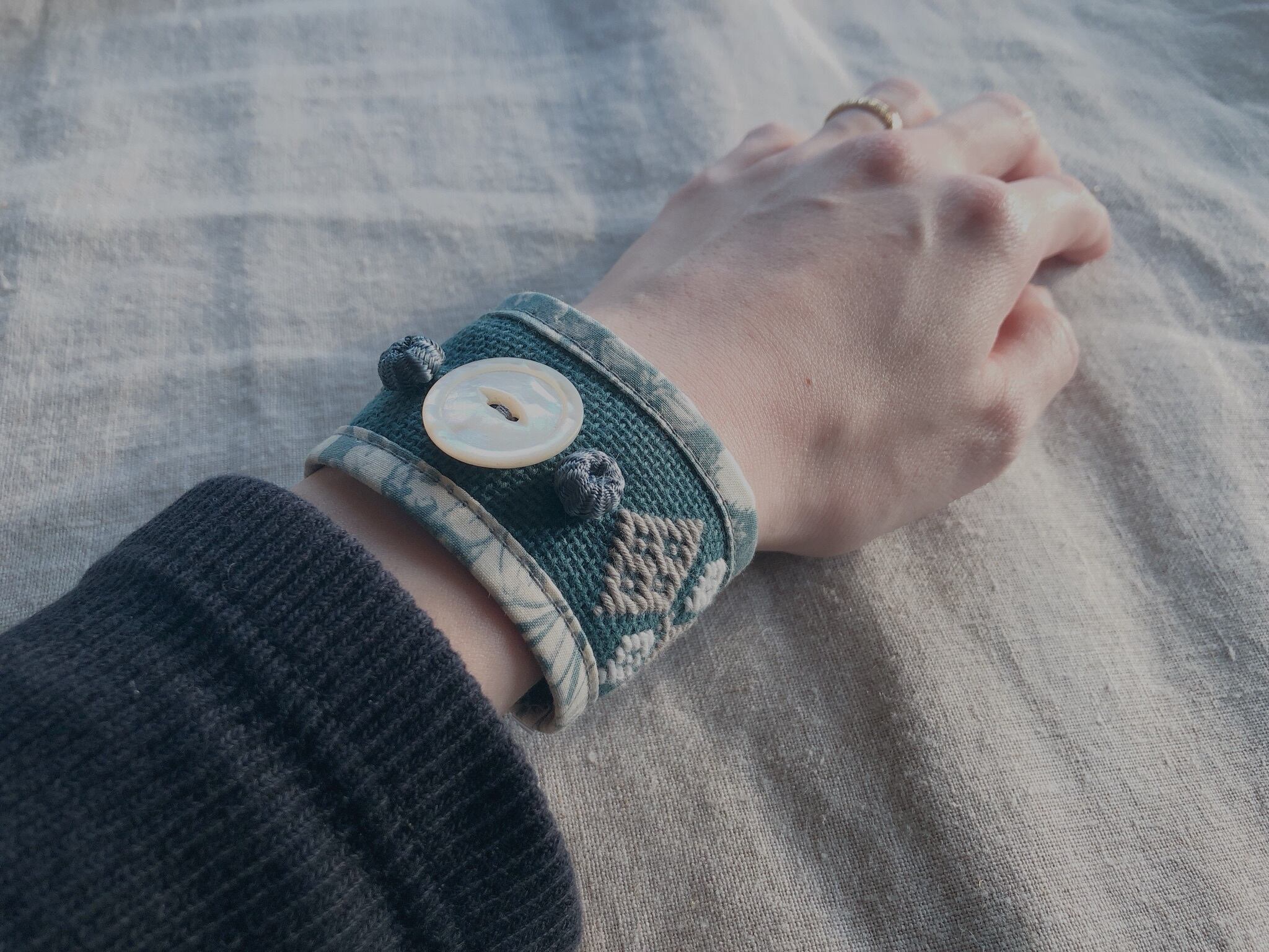 not for sale⁂刺し子と古い生地とヴィンテージパーツのブレスレット
