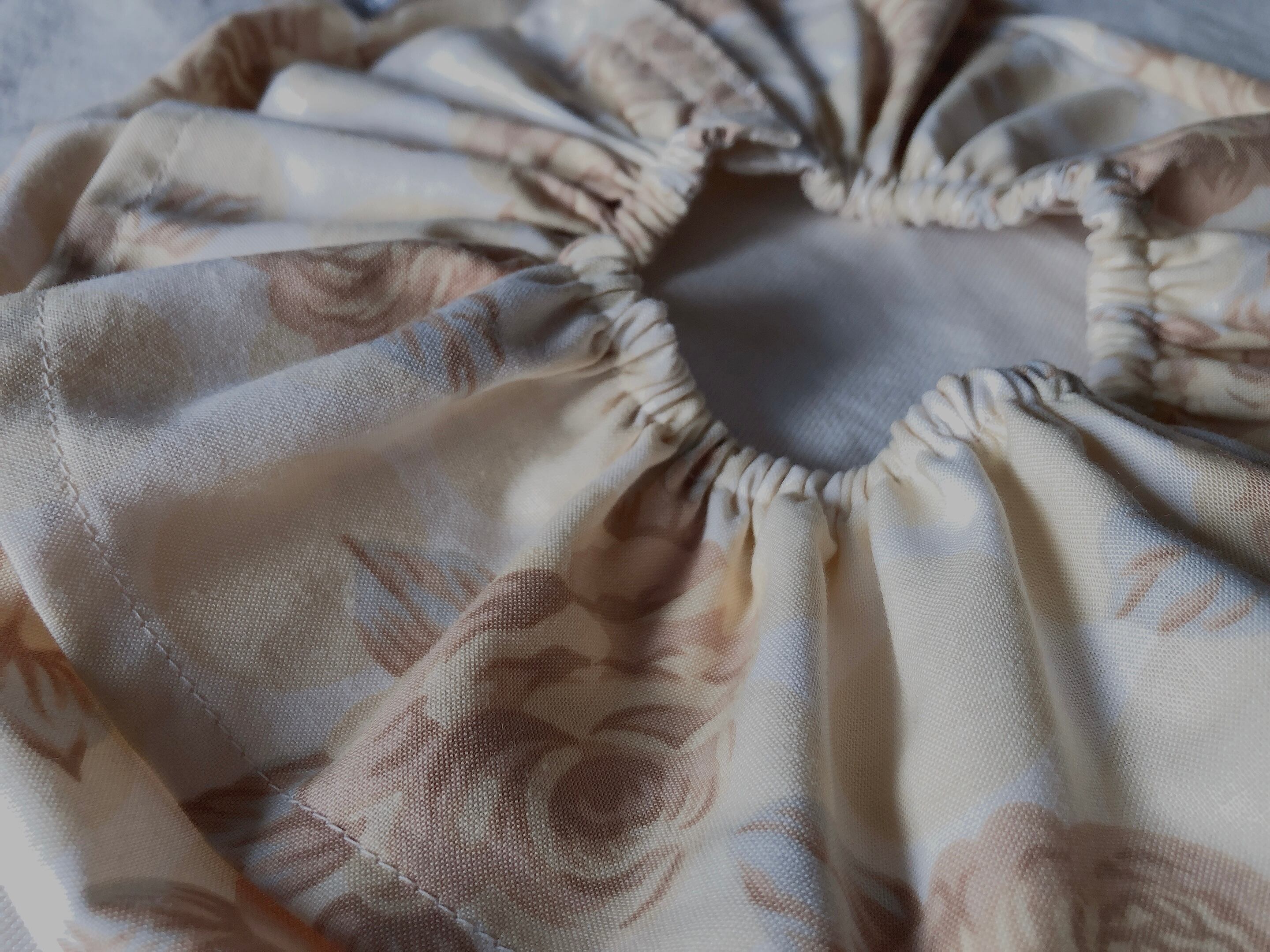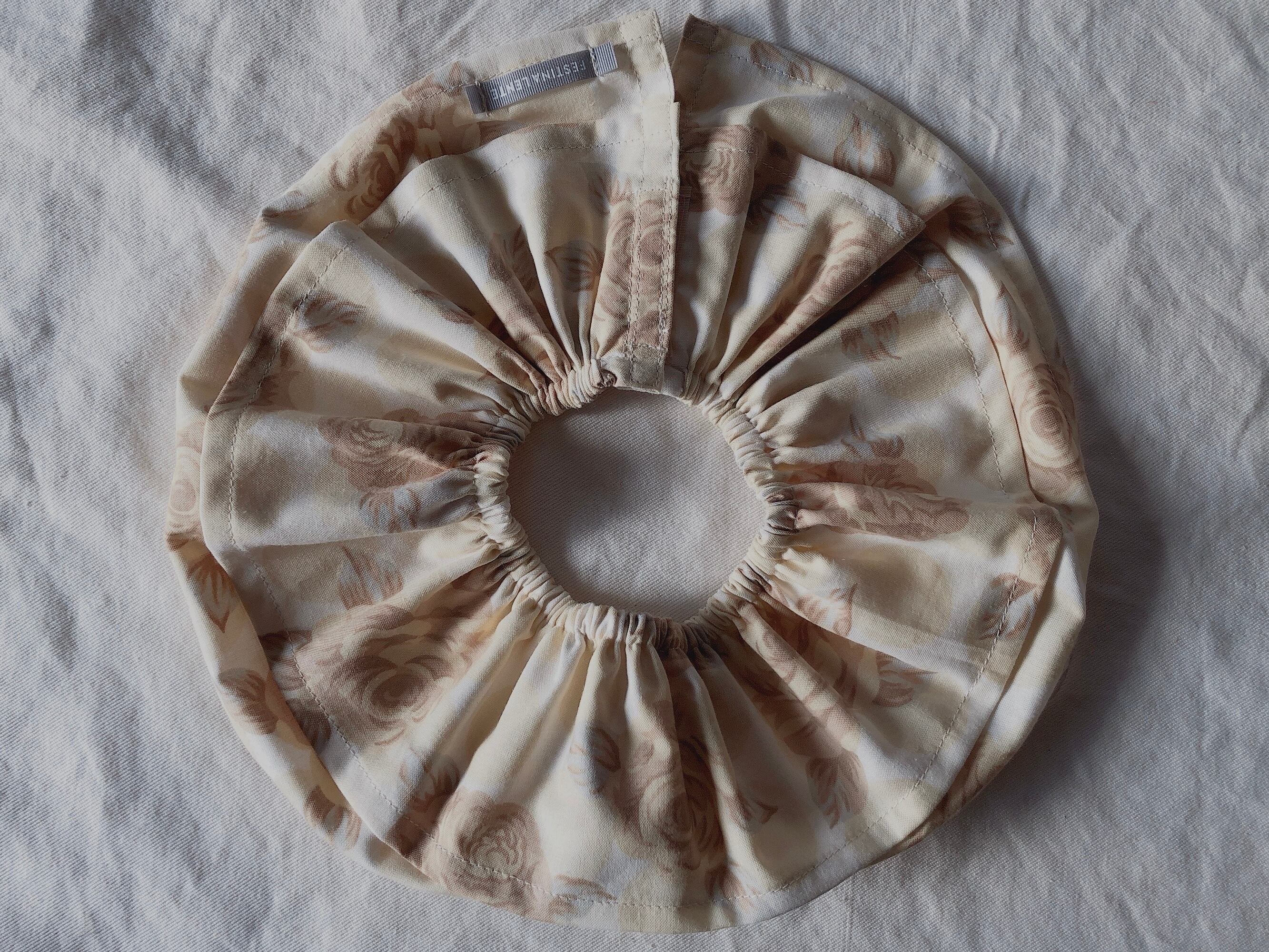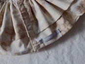 2段の生地に、愛らしいギャザーをたっぷりとあしらい、ほどよく立体感が出るように仕上げています。
