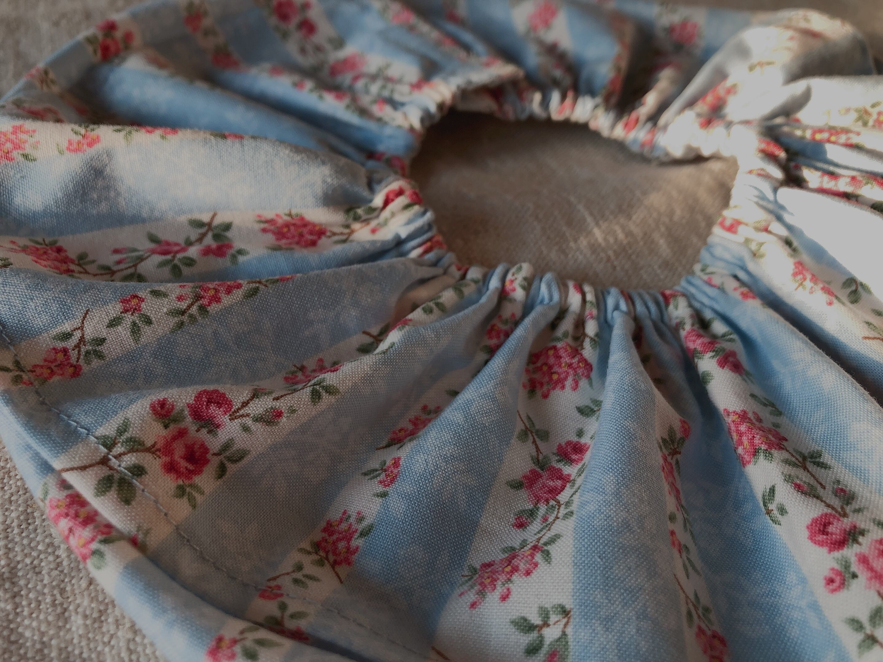 2段の生地に、愛らしいギャザーをたっぷりとあしらい、ほどよく立体感が出るように仕上げています。