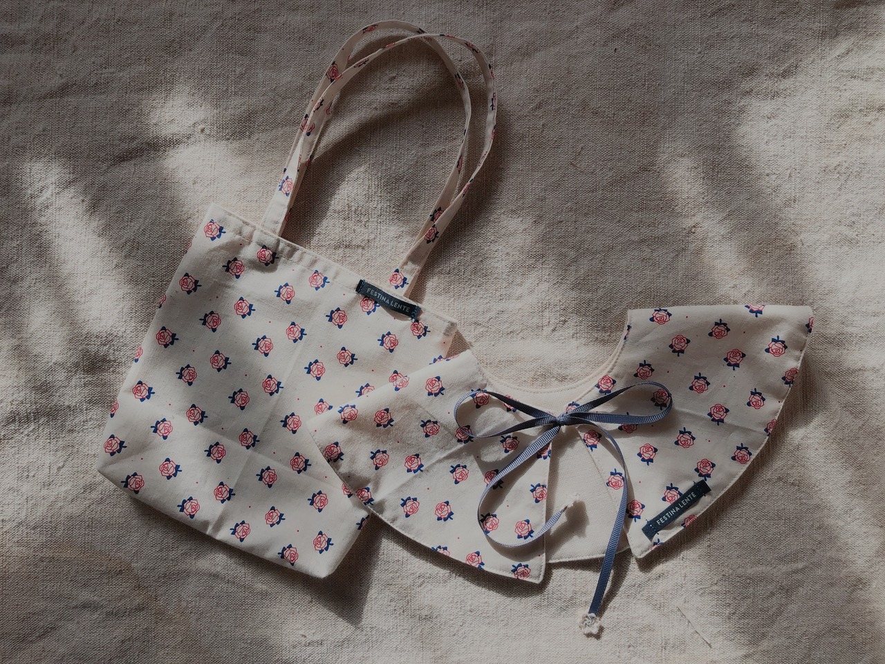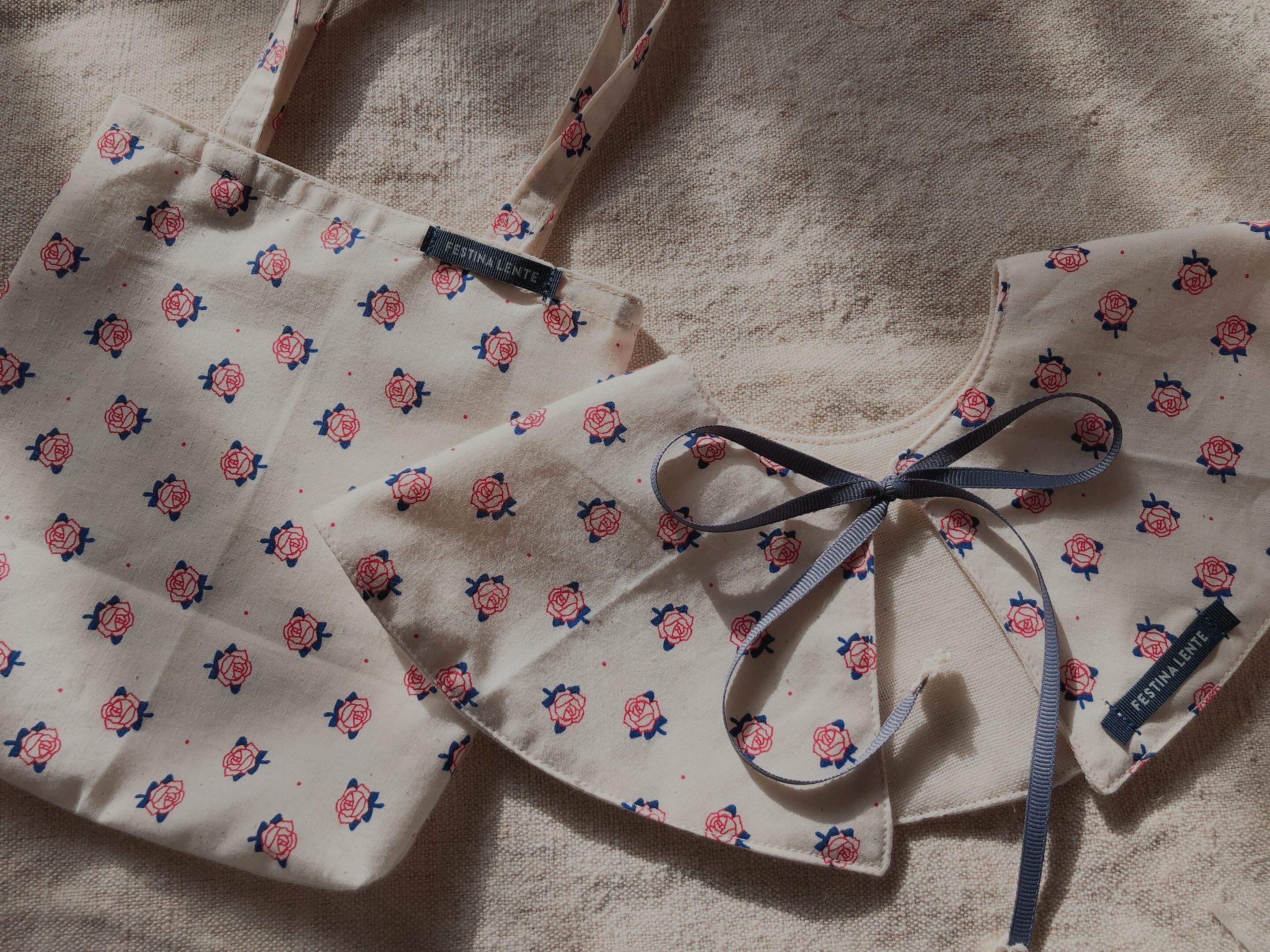 シンプルなお洋服にも、つけ襟のように付け替えてたのしんでいただけるように作りました。