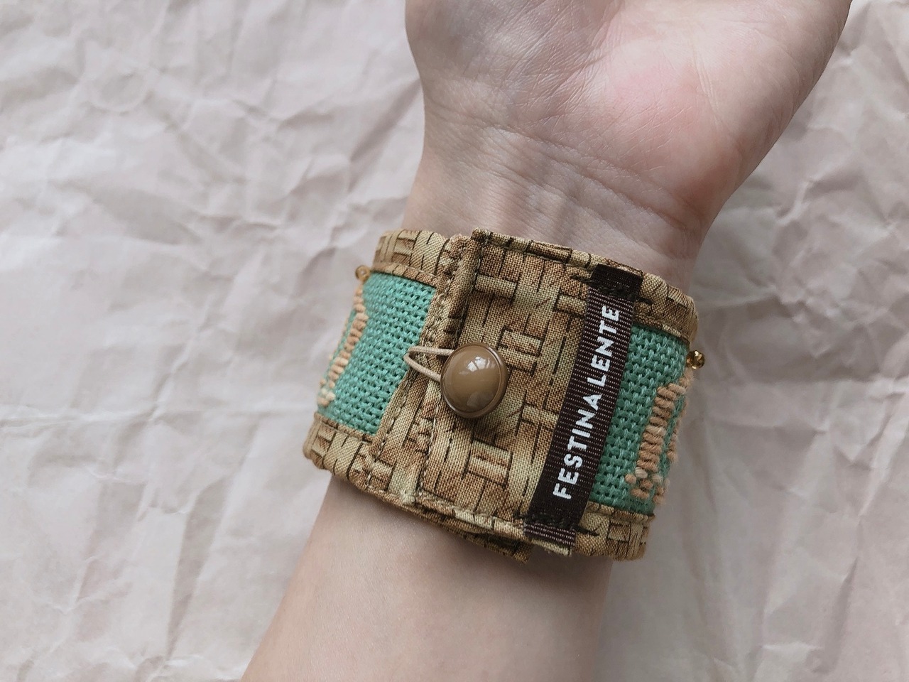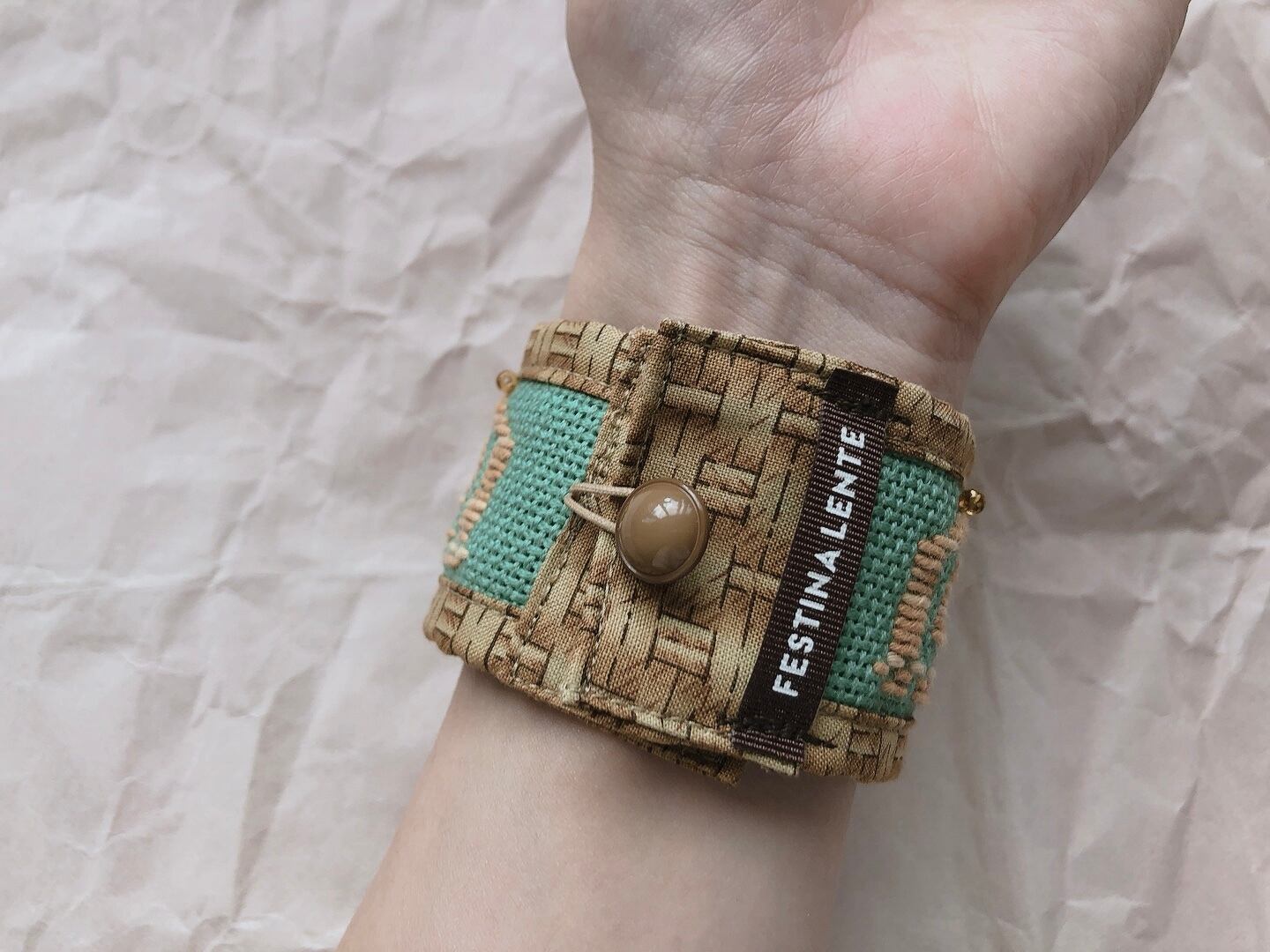 〔 刺し子と古い生地とヴィンテージパーツのお袖ブレスレット 〕