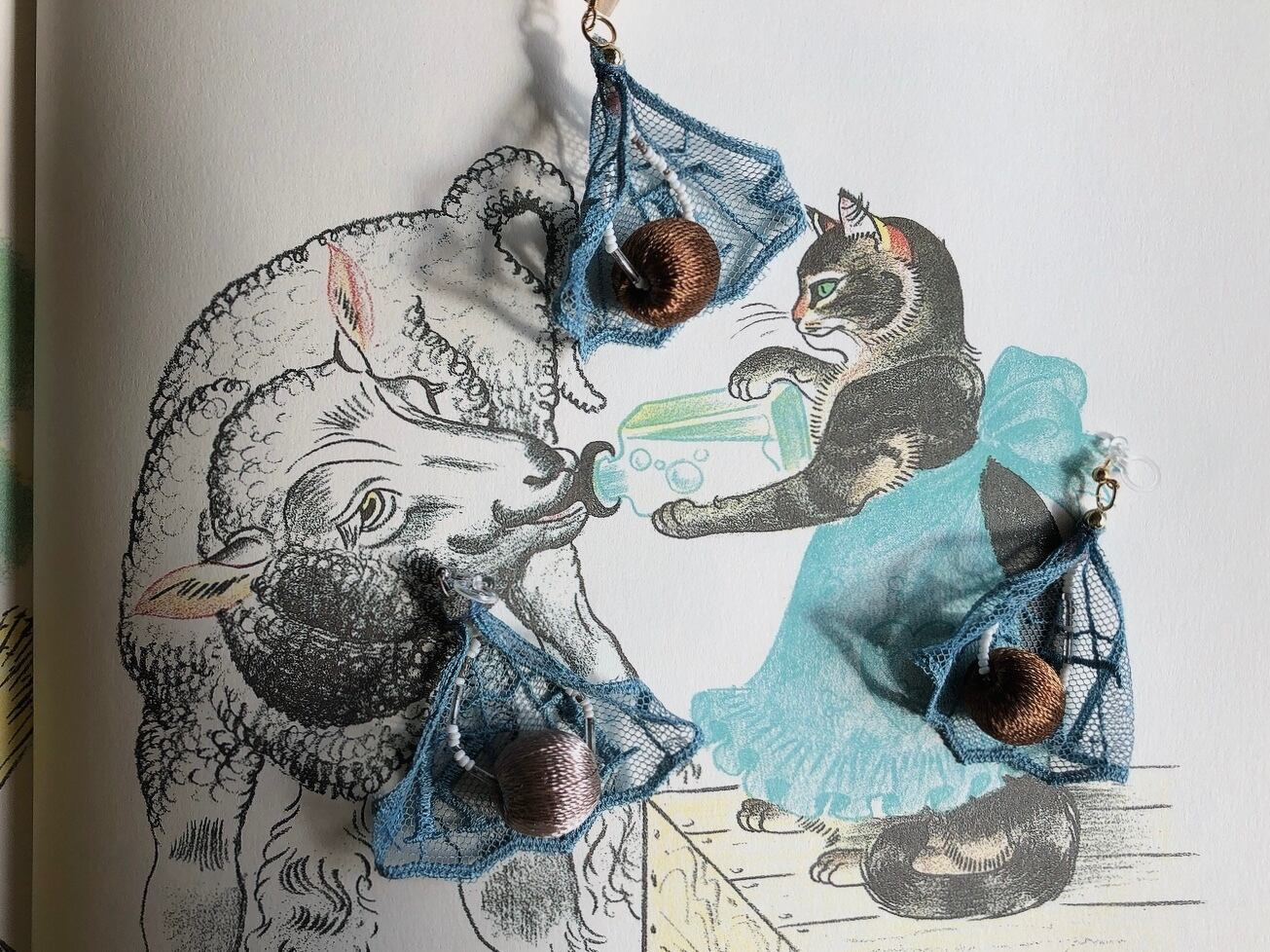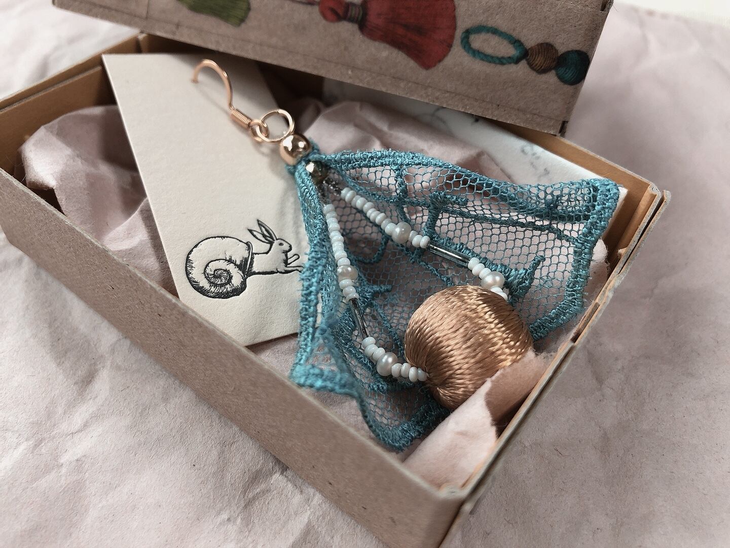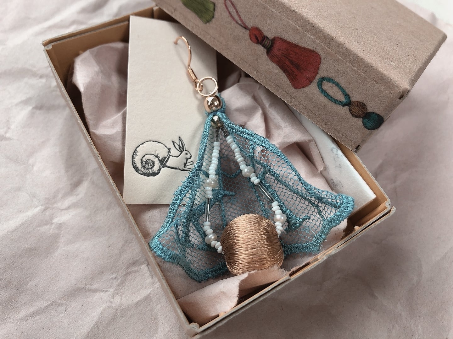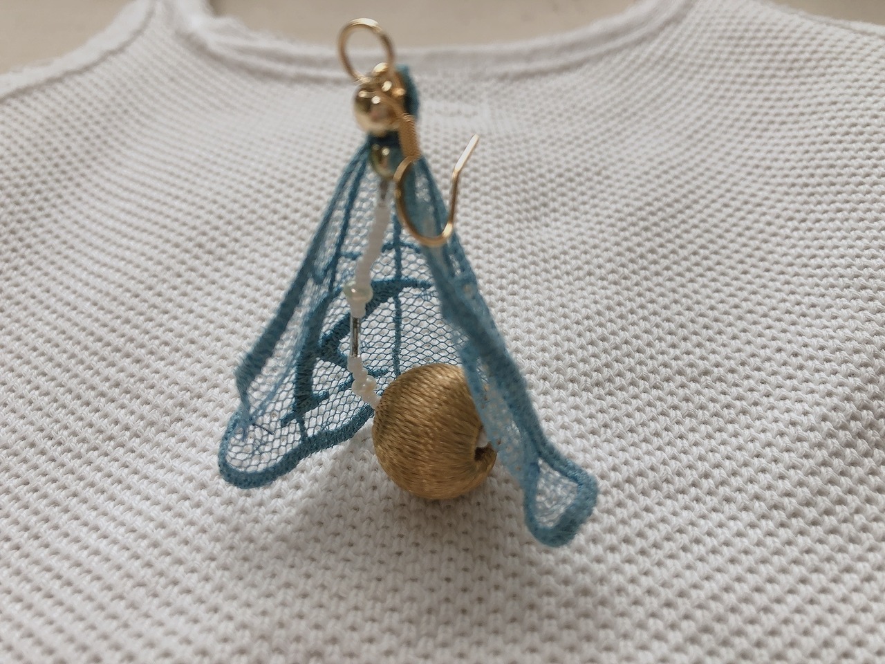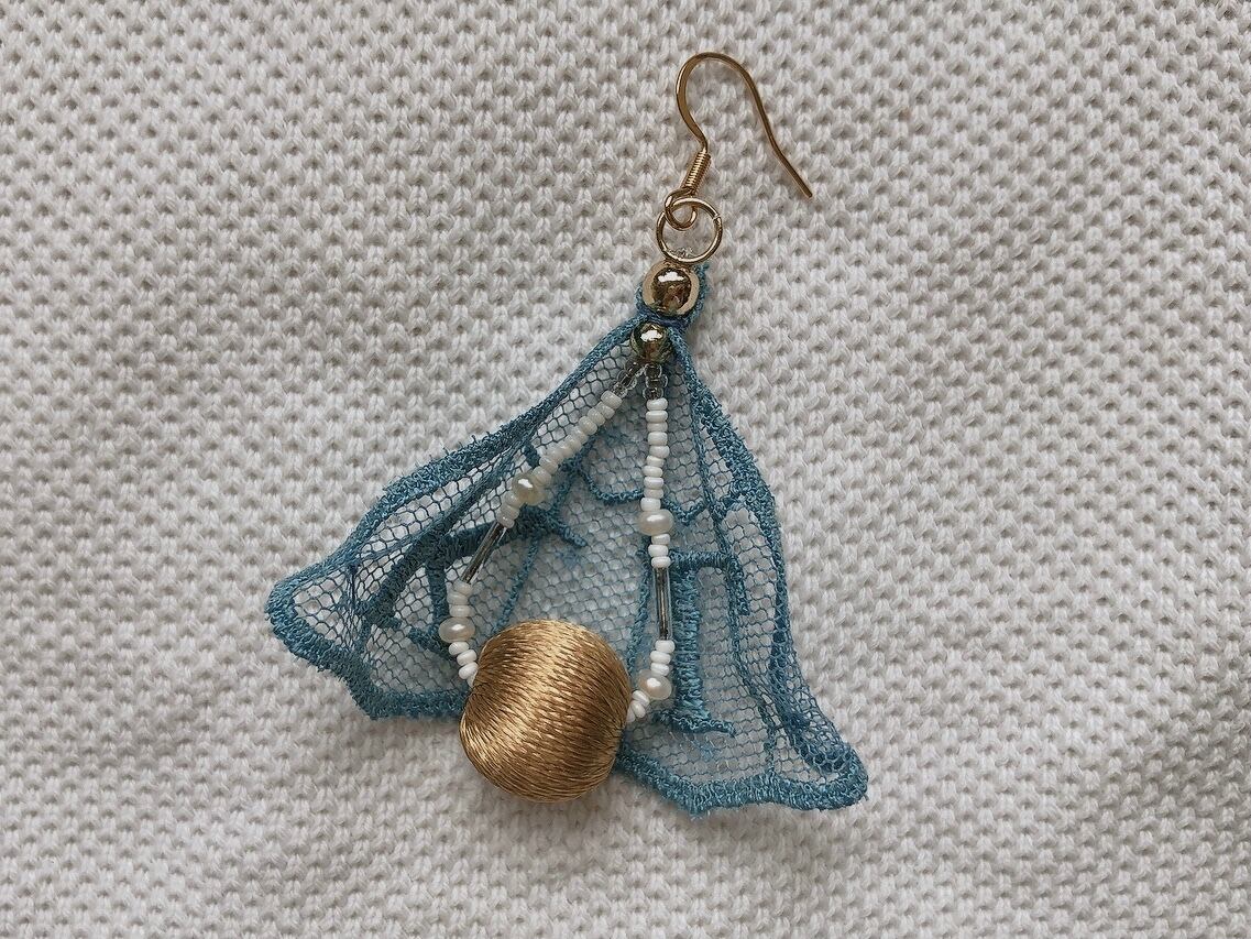 そのレースたちを眺めていたときに、レースの形や連なりがあまりにもうつくしくて、こんな耳飾りがあったらなんてすてきだろうと、耳にあててみました。