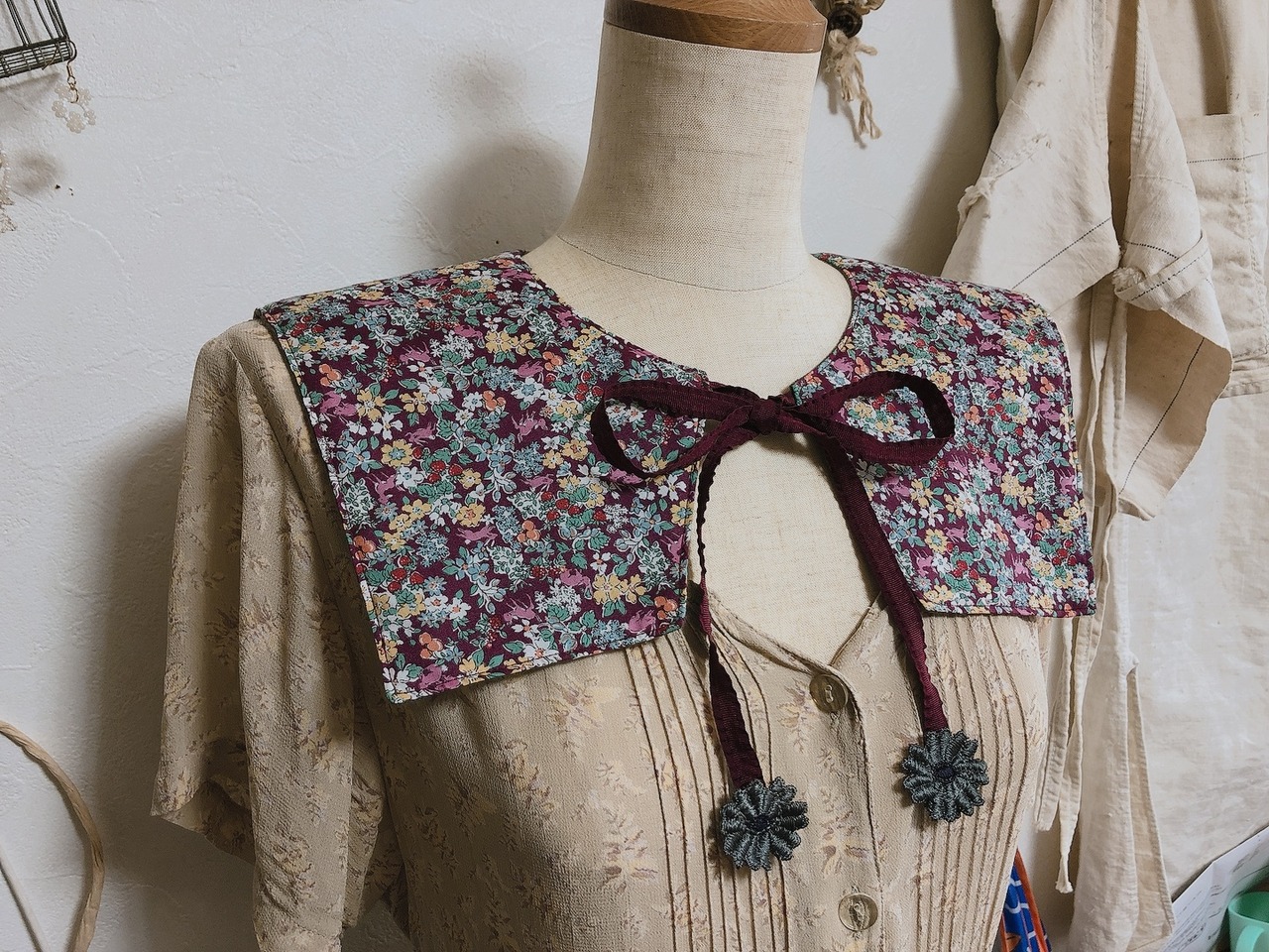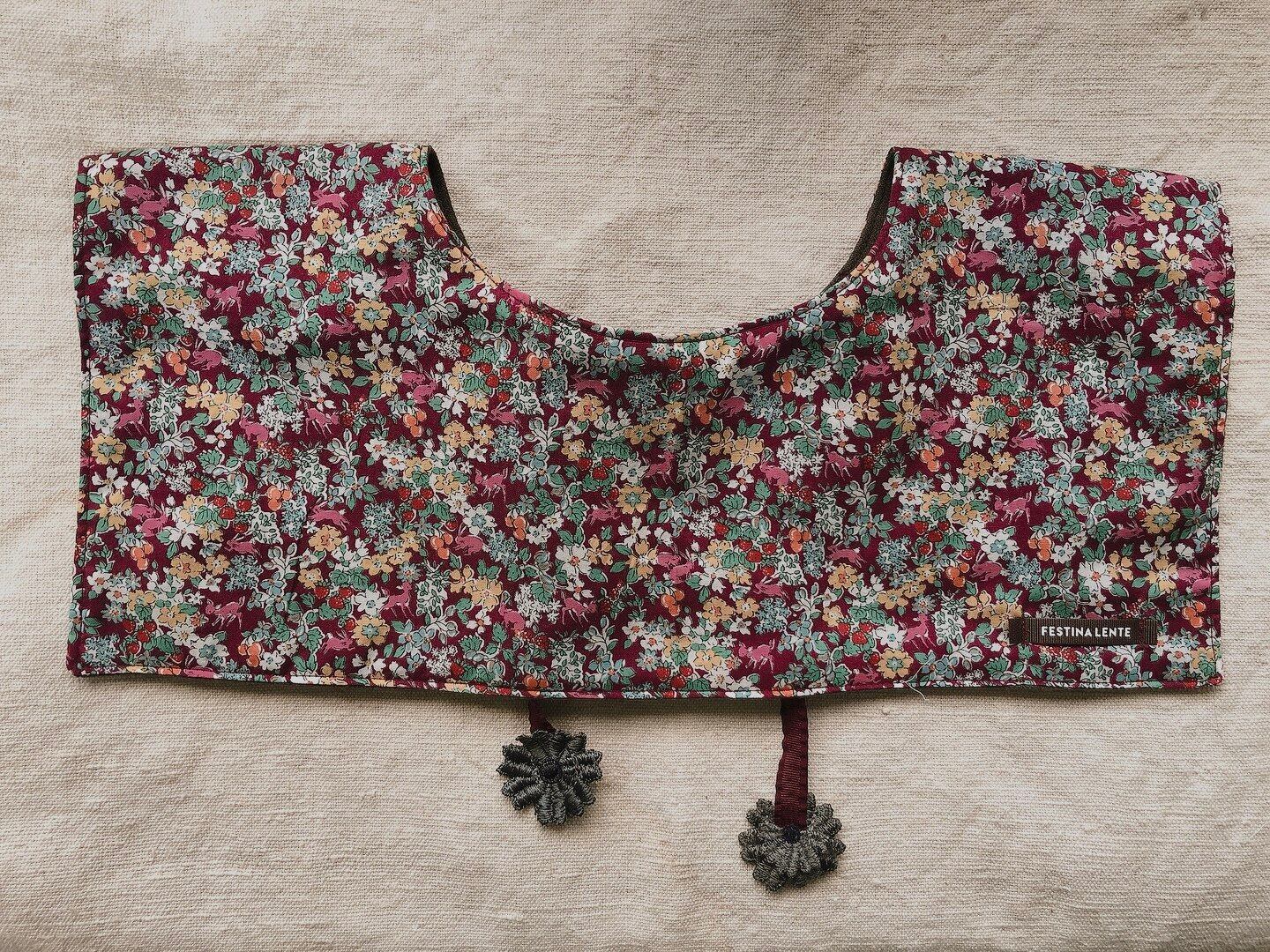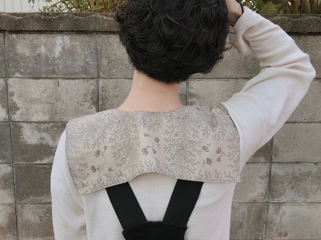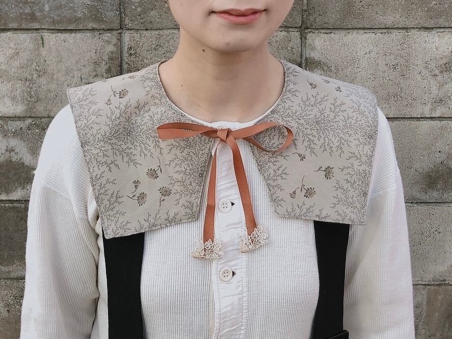 ベビー&キッズのつけ襟おめかしビブを制作していて、こんなにすてきな生地だったらおとなのつけ襟を作っても素敵だろうなと思ったことをきっかけに制作。