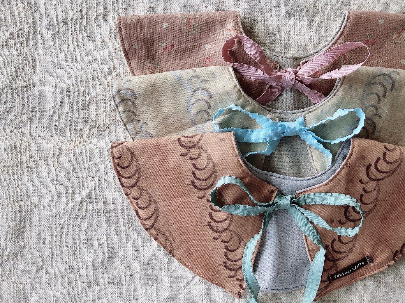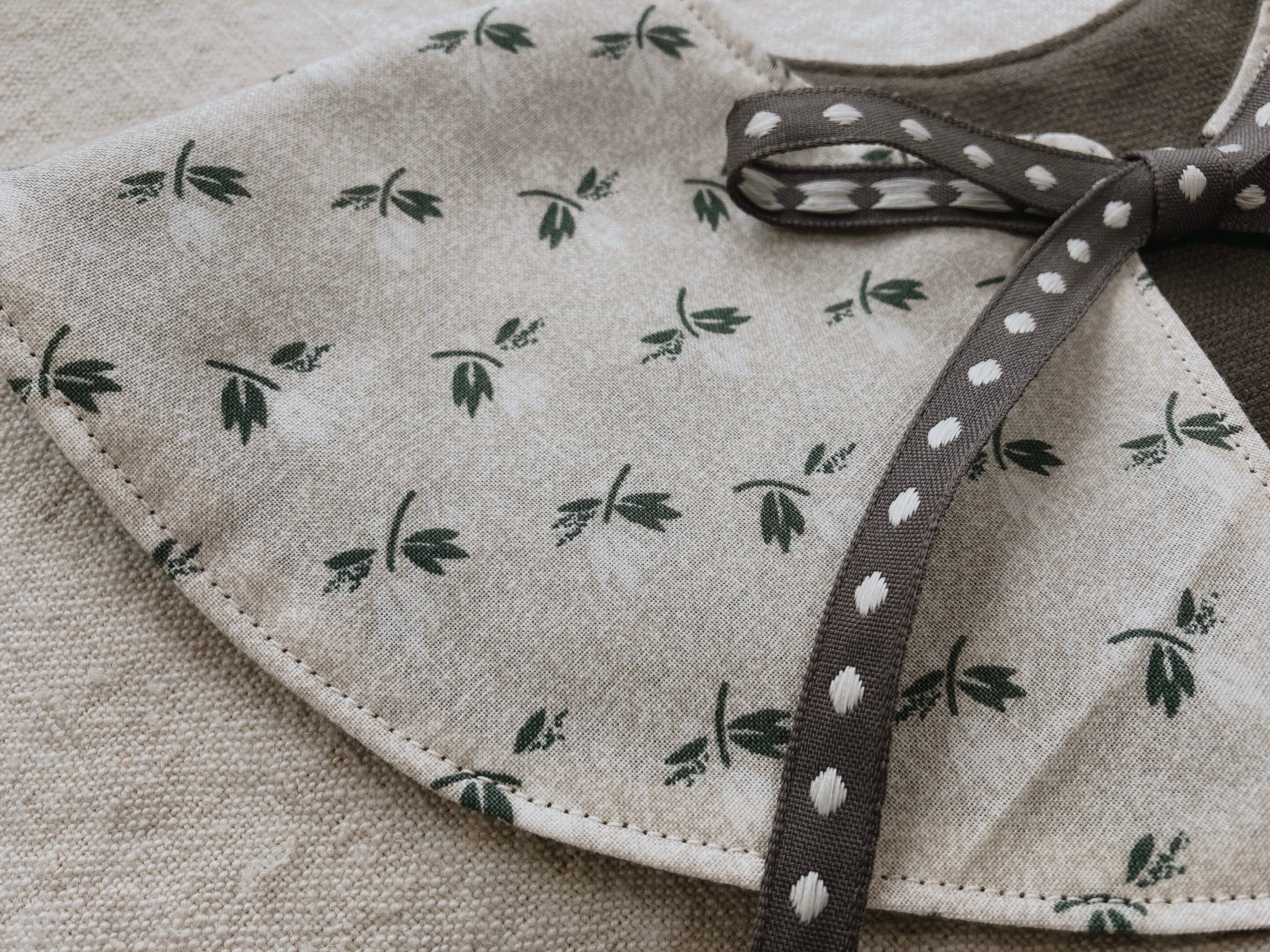 生地コレクターである母の生地コレクションの中から、こちらのビブにぴったりの生地をセレクトしております。