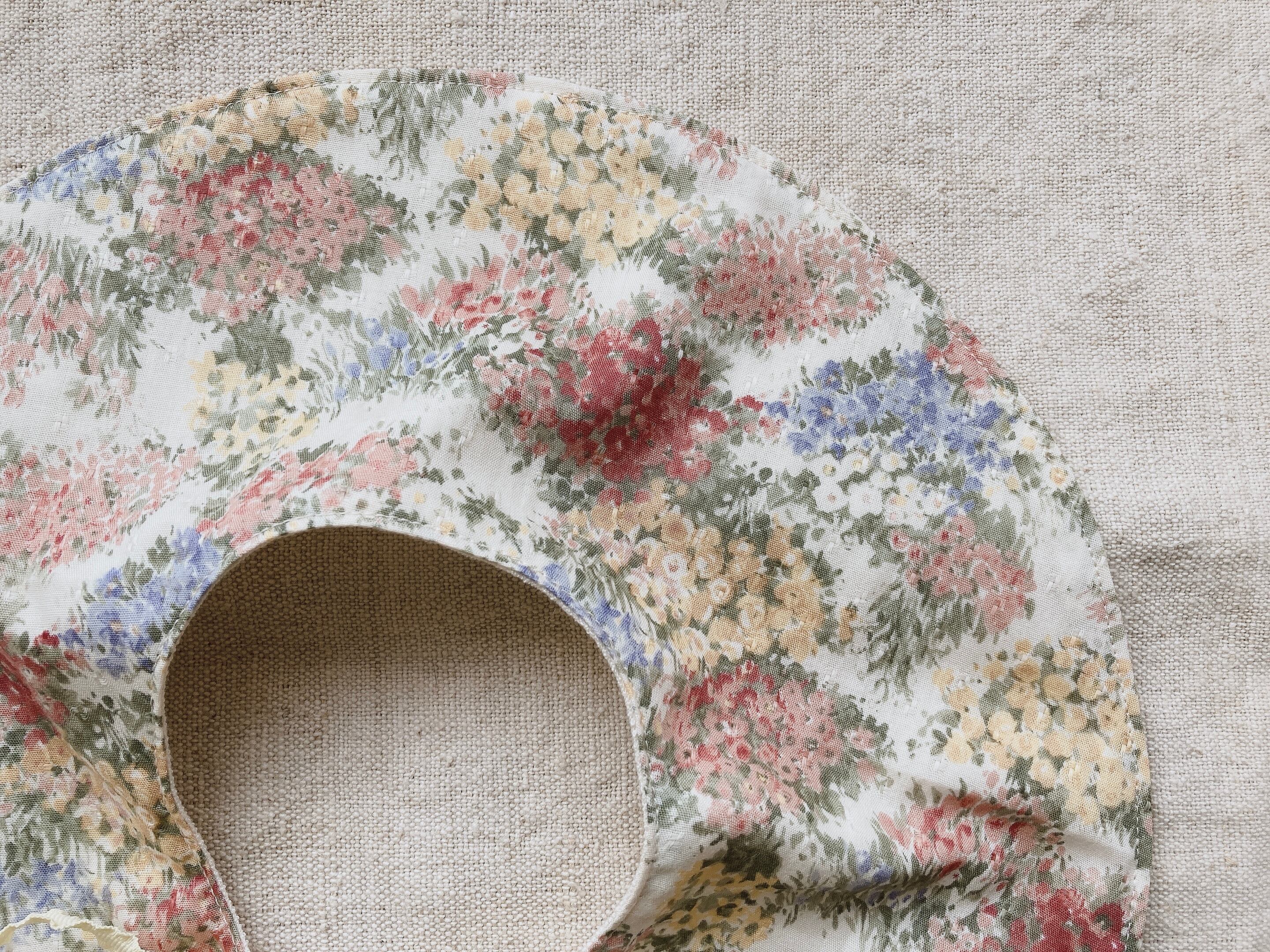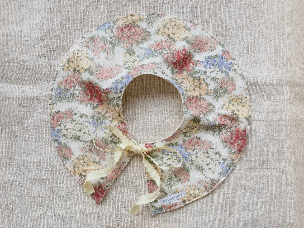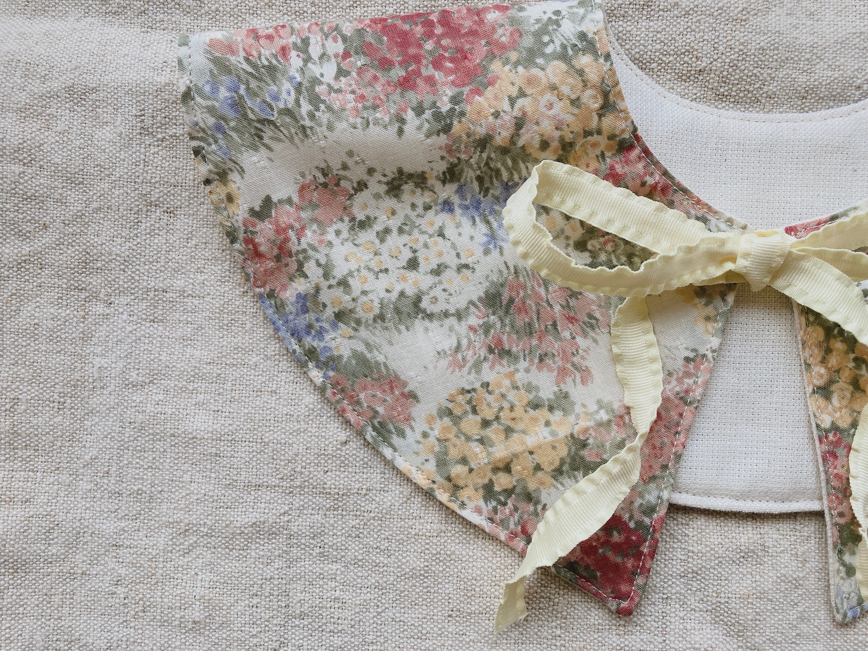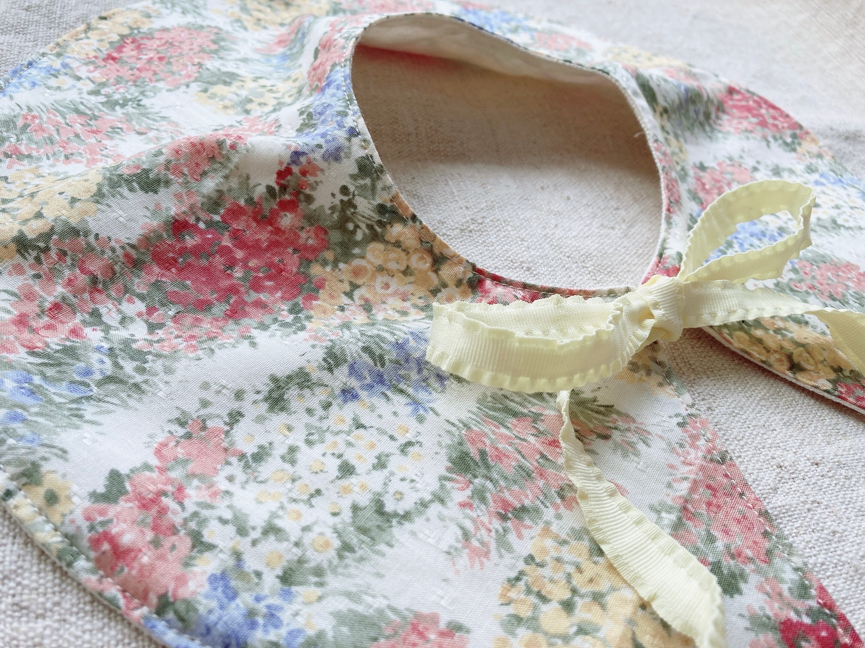 生地コレクターである母の生地コレクションの中から、こちらのビブにぴったりの生地をセレクトしております。