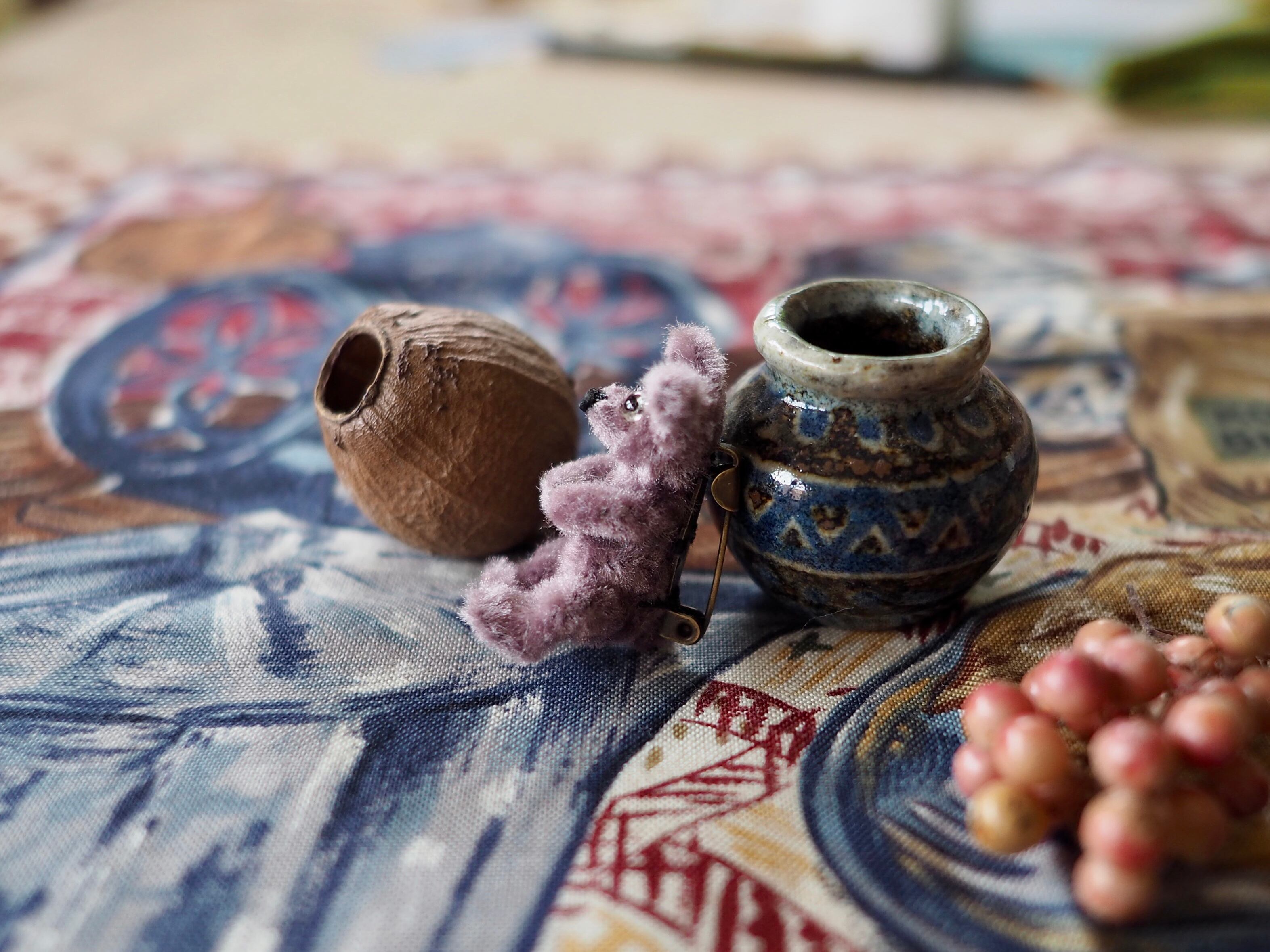 and 帽子やお洋服につけられるように、ブローチピンをつけました。(真鍮製)